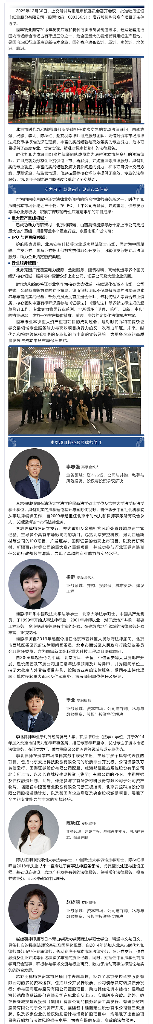 时代九和再传捷报!助力恒丰纸业发行股份购买资产项目成功过会